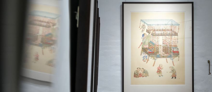 展覽的起點,源於一幅古畫的現代迴響。明代計盛的《貨郎圖》是市井風情的記錄。畫中貨郎擔子上琳琅滿目的雀鳥與玩物,點燃了孩童眼中最純真的光芒。他所販賣的,從來不只是商品,而是對新奇世界的想像與期盼。《寵夢樂園》 正是這份精神的當代詮釋。梁氏將古代的雀鳥攤,轉化為今日都市中熟悉的格子店與扭蛋機;將昔日對珍禽異雀的好奇,投射於當下備受追捧的Art toy。這組作品完成了從「貨郎圖」到「寵夢樂園」的時空穿越,揭示了無論古今,我們總在物件中,寄託著夢想和因期待而悸動的童心。