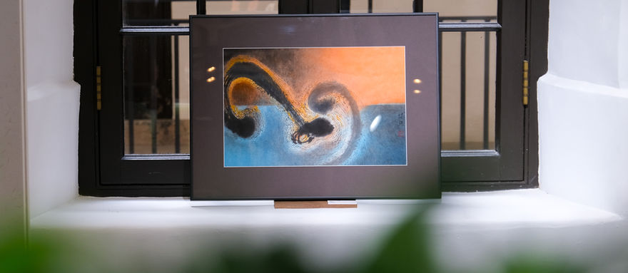 ⾃1969年開始⽔墨畫創作以來,先後從「波普⽔墨」、「師古重構」、「⾃然⼼象」、「我法求新」不同時期探索,由具象變法為抽象。踏入21世紀,因熱愛漢字⽽試將書畫⼭⽔融合,從中體現「書為⼼畫」,「畫字我⼼」的異途,並在無法⽣我法的過程中,無中⽣有,以胸中丘壑舒展私我的意象。現在,以無拘無束的墨彩游走,呈現⾃然浩⼤宏觀的⼼畫。