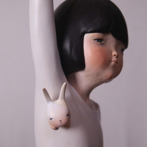 Woojung Son 筆下陪伴在女孩身邊的白虎、貓和其他動物也是代表了她所愛的人,她把想像、夢想和自由自在的想法融入在作品當中,以她夢想中的烏托邦把當代藝術轉化為寫實與虛幻之間。